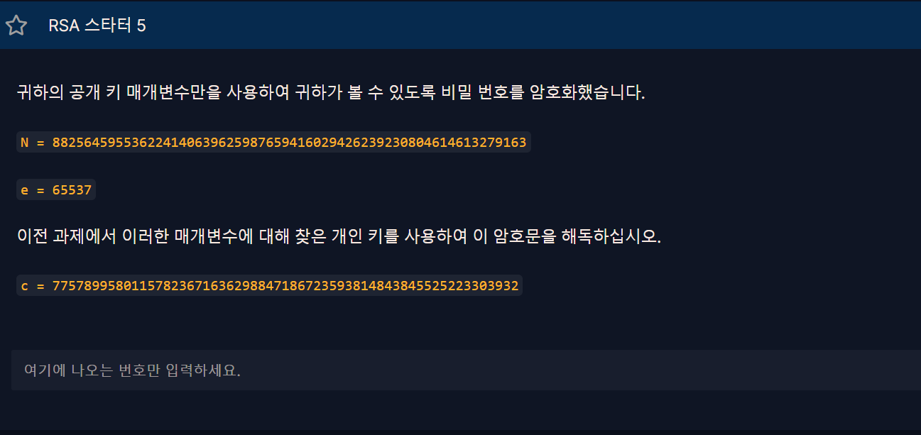 지금 까지 했었던 rsa starter을 총 동원해서 이번엔 진짜 암호문을 풀어보겠다
