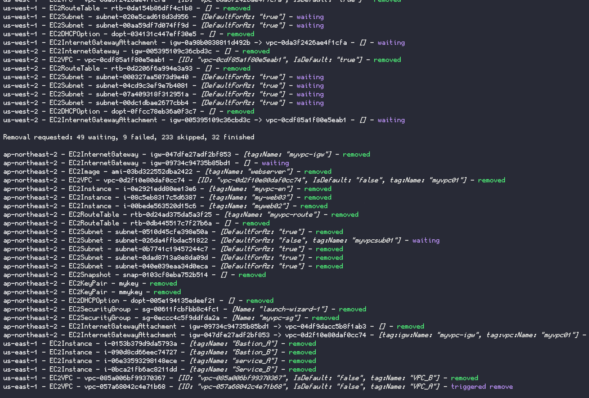 이렇게 입력하면 내 모든 vpc와 서브넷들을 다 삭제해준다