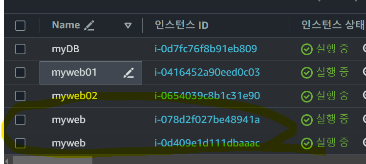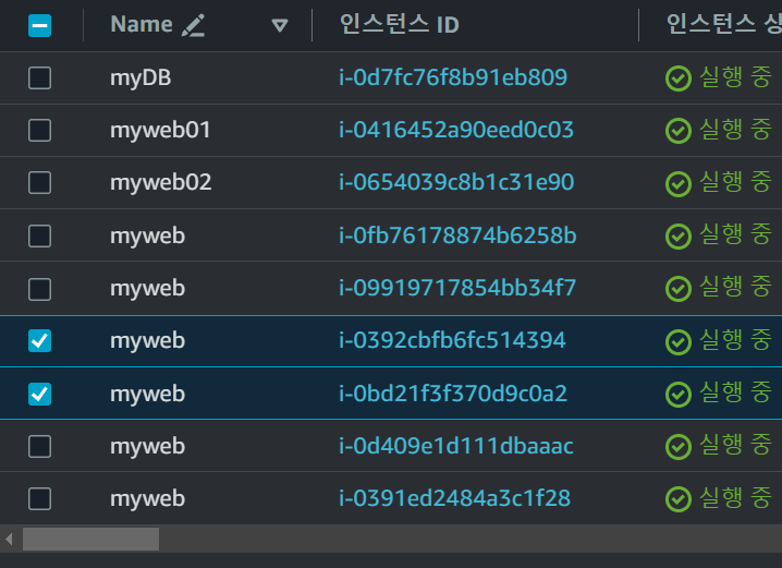 이미지 다 만들었으니까 ec2에서 web02 인스턴스 시작 누르기