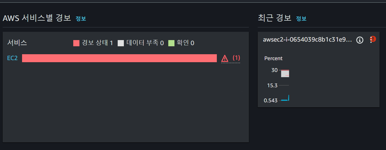 좀 시간 지나서 cloudwatch 가면 ec2가 화나있음