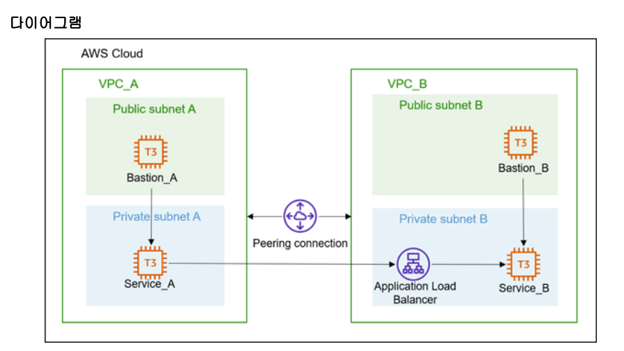 요청자에 A VPC 를 넣고 수락자에 B VPC 를 넣고